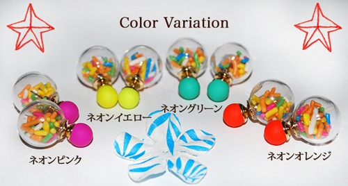 ネオンカラーのトップにガラス玉の中にはカラフルなビーズが入っています!