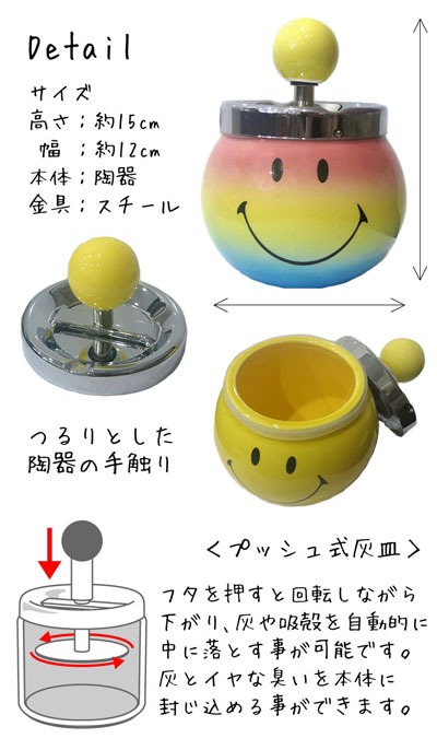置いておくだけで可愛い、スマイルマークをモチーフにした回転灰皿です☆
