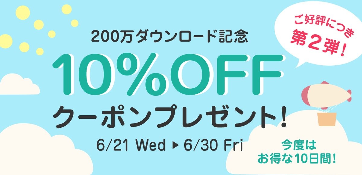 6月30日まで、全員に10%OFFクーポンがもらえる大チャンス♪