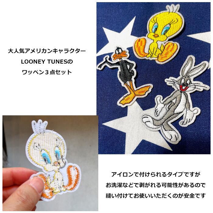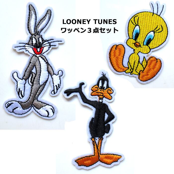 ワッペン/わっぺん/アップリケ/あっぷりけ/大人用/子供用/大人向け/子供向け/アイロン/手縫い/アイロンワッペン/刺繍ワッペン/キャラクターワッペン/アイロン接着/アイロンで付けられる/キャラクター/アメリカンキャラクター/アメキャラ/LOONEYTUNES/ルーニーテューンズ/ルーニーチューンズ/バッグスバニー/トゥイーティ/ダフィーダック/3点セット/3枚セット/3個セット/セット売り/刺繍/手芸/補修/キャップ/帽子/パーカー/フーディ/トレーナー/給食袋/体操着/手提げ/お稽古バッグ/シンプル/おしゃれ/カジュアル/ポップ/カルチャー/レトロ/かわいい/かっこいい/プレゼント/誕生日/クリスマス/お祝い/入園/卒園/入学/卒業/新生活/海外雑貨/アメリカン雑貨/アメ雑/ダブルスリー