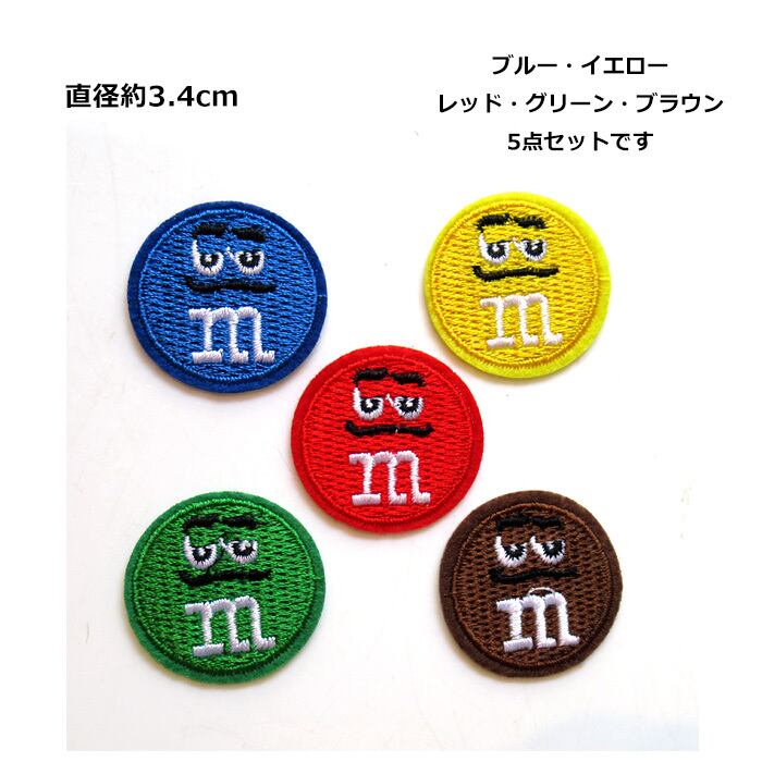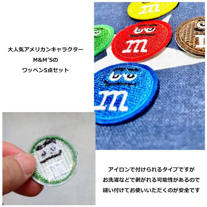 ワッペン/わっぺん/アップリケ/あっぷりけ/大人用/子供用/大人向け/子供向け/アイロン/手縫い/アイロンワッペン/刺繍ワッペン/キャラクターワッペン/アイロン接着/アイロンで付けられる/キャラクター/アメリカンキャラクター/アメキャラ/M&M's/エムアンドエムズ/レッド/グリーン/ブルー/イエロー/ブラウン/5点セット/5枚セット/5個セット/セット売り/刺繍/手芸/補修/キャップ/帽子/パーカー/フーディ/トレーナー/給食袋/体操着/手提げ/お稽古バッグ/シンプル/おしゃれ/カジュアル/ポップ/カルチャー/レトロ/かわいい/かっこいい/プレゼント/誕生日/クリスマス/お祝い/入園/卒園/入学/卒業/新生活/海外雑貨/アメリカン雑貨/アメ雑/ダブルスリー