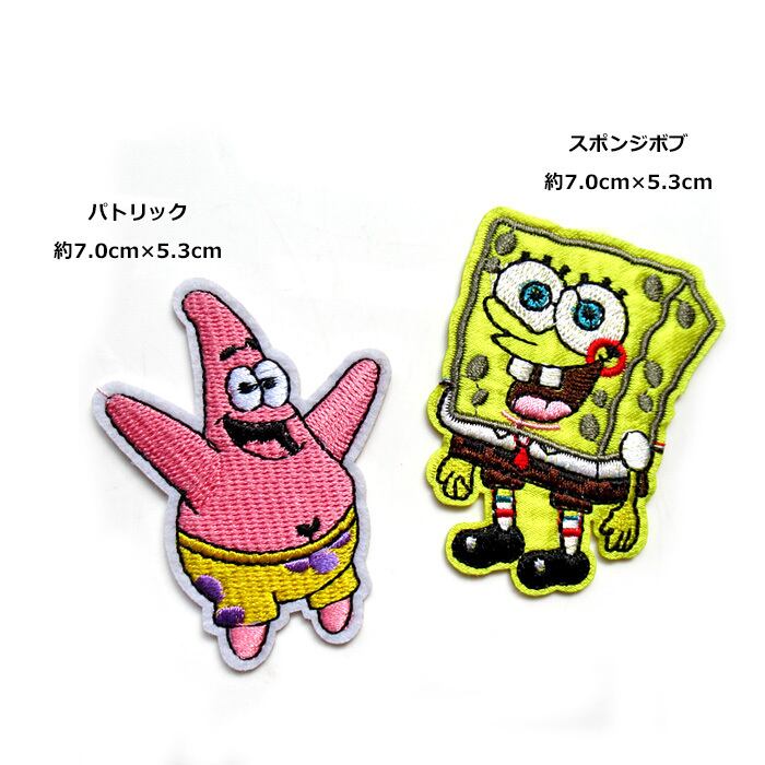 ワッペン/わっぺん/アップリケ/あっぷりけ/大人用/子供用/大人向け/子供向け/アイロン/手縫い/アイロンワッペン/刺繍ワッペン/キャラクターワッペン/アイロン接着/アイロンで付けられる/キャラクター/アメリカンキャラクター/アメキャラ/スポンジボブ/パトリック/ボブ/2点セット/2枚セット/2個セット/セット売り/刺繍/手芸/補修/キャップ/帽子/パーカー/フーディ/トレーナー/給食袋/体操着/手提げ/お稽古バッグ/シンプル/おしゃれ/カジュアル/ポップ/カルチャー/レトロ/かわいい/かっこいい/プレゼント/誕生日/クリスマス/お祝い/入園/卒園/入学/卒業/新生活/海外雑貨/アメリカン雑貨/アメ雑/ダブルスリー