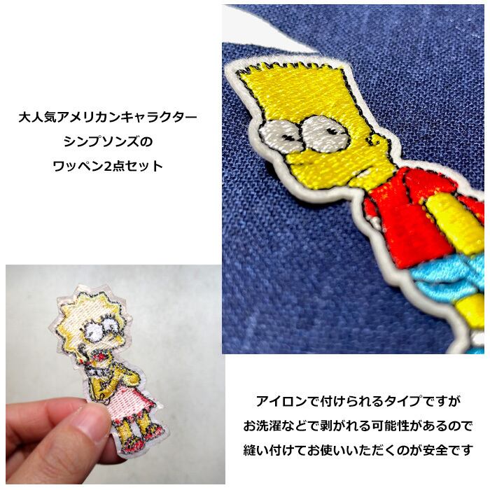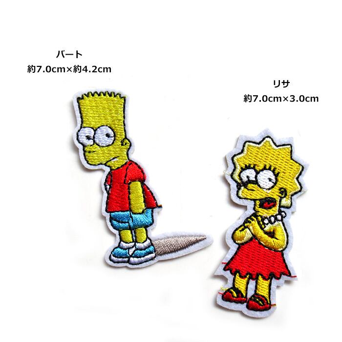 ワッペン/わっぺん/アップリケ/あっぷりけ/大人用/子供用/大人向け/子供向け/アイロン/手縫い/アイロンワッペン/刺繍ワッペン/キャラクターワッペン/アイロン接着/アイロンで付けられる/キャラクター/アメリカンキャラクター/アメキャラ/シンプソンズ/バート/リサ/2点セット/2枚セット/2個セット/セット売り/刺繍/手芸/補修/キャップ/帽子/パーカー/フーディ/トレーナー/給食袋/体操着/手提げ/お稽古バッグ/シンプル/おしゃれ/カジュアル/ポップ/カルチャー/レトロ/かわいい/かっこいい/プレゼント/誕生日/クリスマス/お祝い/入園/卒園/入学/卒業/新生活/海外雑貨/アメリカン雑貨/アメ雑/ダブルスリー