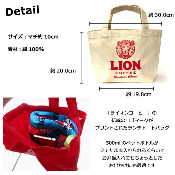 【即納】 ライオンコーヒー ランチトート バッグ レッド ホワイト z-313