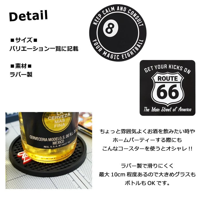 コースター ラバー ブラック バドワイザー Budweiser ハイネケン Heineken 8ボール エイトボール ビリヤード ジャックダニエル コロナビール コロナ コロナエクストラ ROUTE66 Nos 男前雑貨 誕生日 父の日 プレゼント お祝い 一人暮らし 引っ越し 結婚祝い アメリカン雑貨 カフェ バー パーティ 食事会 アウトドア キャンプ 滑りにくい インスタ映え ダブルスリー