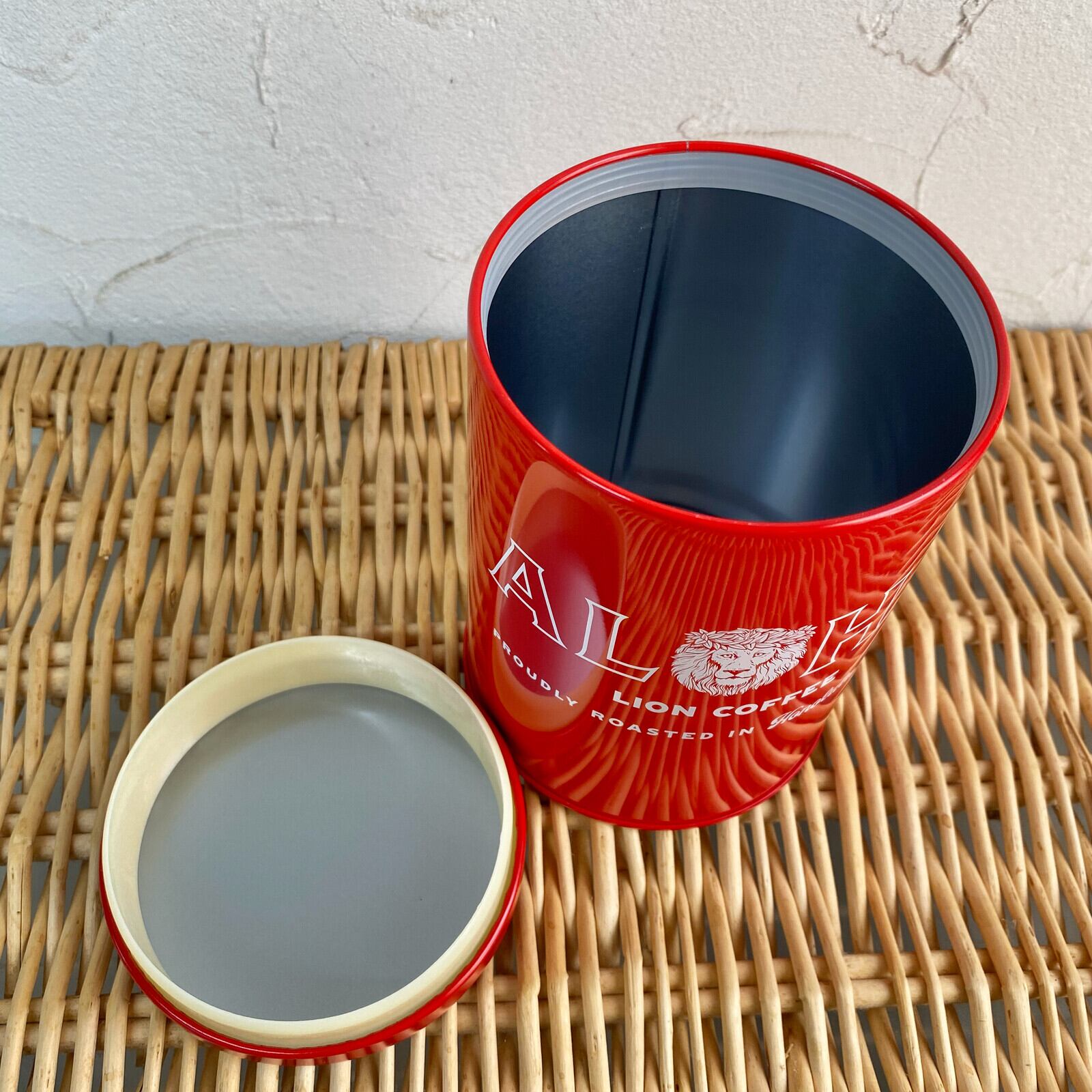 キャニスター/保存容器/保存缶/缶ケース/筒/レッド/スチール製/日本製/ライオンコーヒー/LIONCOFFEE/オフィシャル/オフィシャルグッズ/公式/公式グッズ/ハワイ/コーヒーショップ/フレーバーコーヒー/ロゴデザイン/キッチン雑貨/キッチンツール/アメリカ/雑貨/アメリカン雑貨/輸入雑貨/海外雑貨/ハワイ/雑貨/ハワイアン雑貨/ハワイの雑貨/ハワイグッズ/プレゼント/ギフト/賞品/景品/新生活/引っ越し/お祝い/バレンタイン/ホワイトデー/クリスマス/母の日/父の日/入学/卒業/一人暮らし/インスタ映え/ダブルスリー