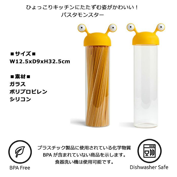 OTOTO/オトト/パスタケース/スパゲティケース/スパゲティコンテナ/パスタコンテナ/Noodle Monster Pasta Container/ヌードルモンスター/モンスター/パスタモンスター/パスタ容器/スパゲティ容器/パスタ用/スパゲティ用/保存容器/保存/容器/ケース/pasta/パスタ/スパゲティ/スパゲッティ/パスタポット/スパゲティポット/パスタ保存びん/パスタ保存瓶/フードストッカー/パスタ入れ/スパゲティ入れ/麺/食洗機OK/BPAフリー/湿気予防/ガラス製/収納/キッチン雑貨/おしゃれ/インテリア/ディスプレイ/オモシロ雑貨/おもしろ雑貨/ユニーク雑貨/キッチン雑貨/キッチンツール/キッチングッズ/ユニークデザイン/プレゼント/ギフト/景品/賞品/2次会/誕生日/クリスマス/プレゼント交換/引っ越し/一人暮らし/新生活/お祝い/開店祝い/バー/カフェ/インスタ映え/オシャレ/ダブルスリー