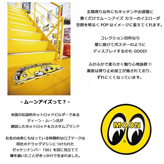 VW TYPE II DELIVERYVAN/アメリカのメーカーブランド/MOON EYES/ムーンアイズ/イエローカラー/ロゴマーク/アイボール/アイボールデザイン/フロアマット/玄関マット/フロアーマット/FLOOR MAT/リビングマット/玄関マット/キッチンマット/バスマット/ラグ/カーペット/ラグマット/32cm×72cm/キャラクター/アメリカンキャラクター/アメキャラ/置くだけ/滑り止め/ずれない/滑らない/すべり止め/すべらない/ユニーク/インテリア/ディスプレイ/店舗/バスルーム/風呂場/浴室/足ふき/リビング/子供部屋/やわらか/ふわふわ/ふかふか/昼寝/床冷え/ペット/ペット用/一匹サイズ/アメリカン雑貨/アメリカ/雑貨/生活雑貨/ホワイト/グリーン/アメ雑/生活雑貨/プレゼント/ギフト/引っ越し/一人暮らし/新生活
